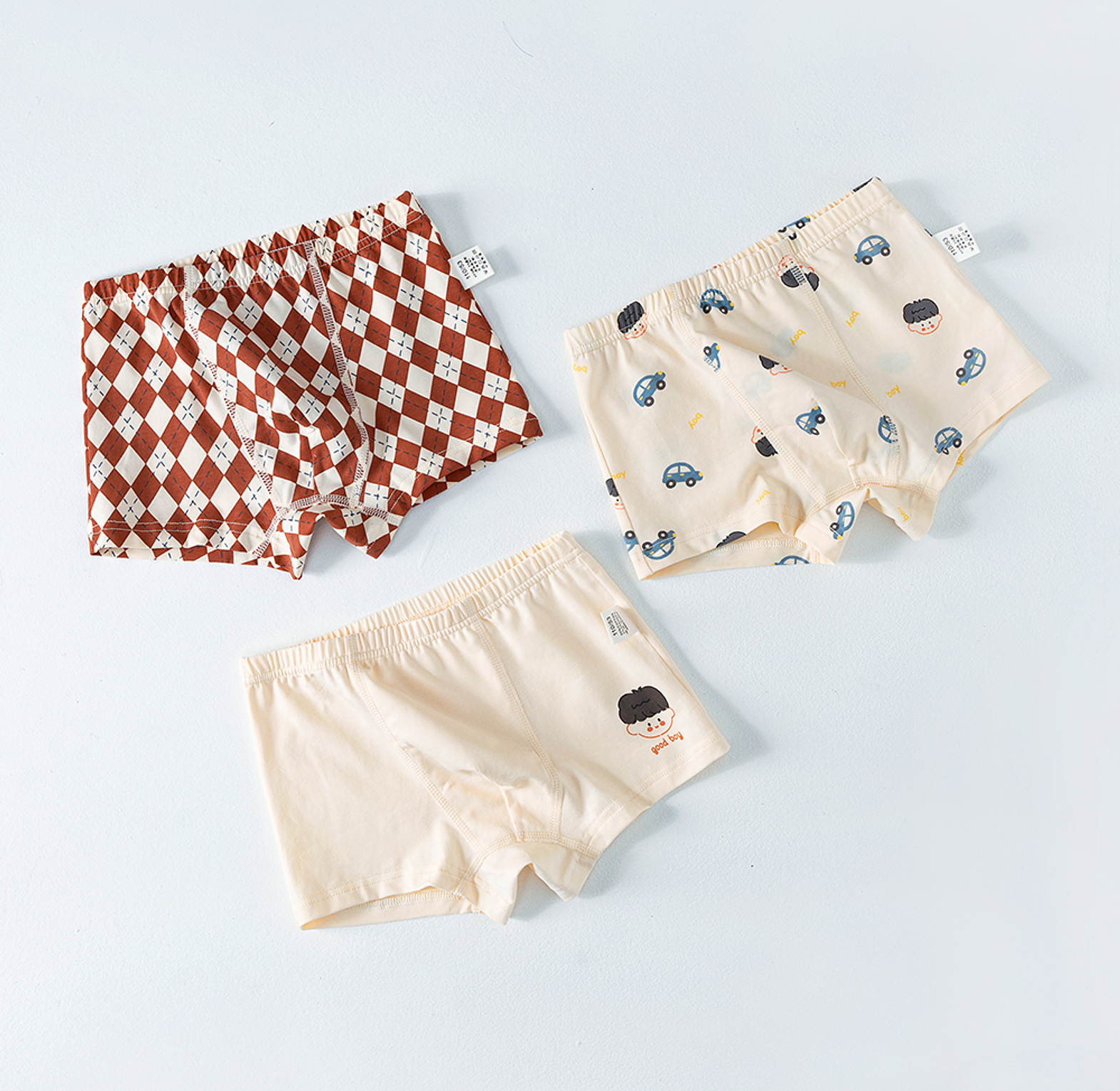 A pack of 3 Soft, breathable, and made for everyday play. These cotton boxers keep boys comfy from morning to bedtime.
